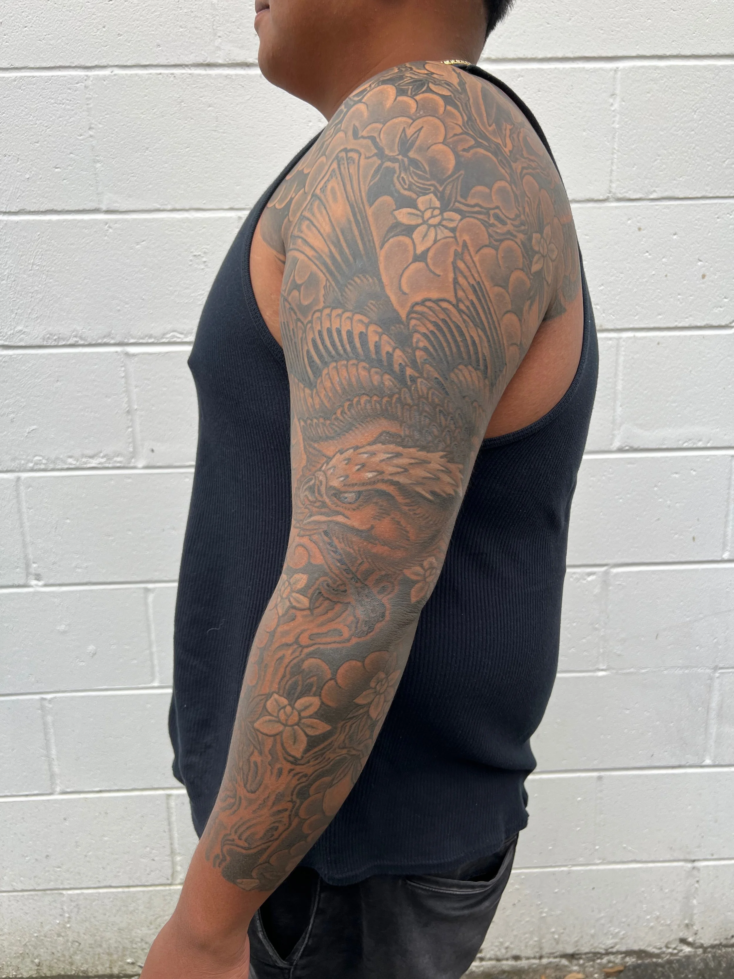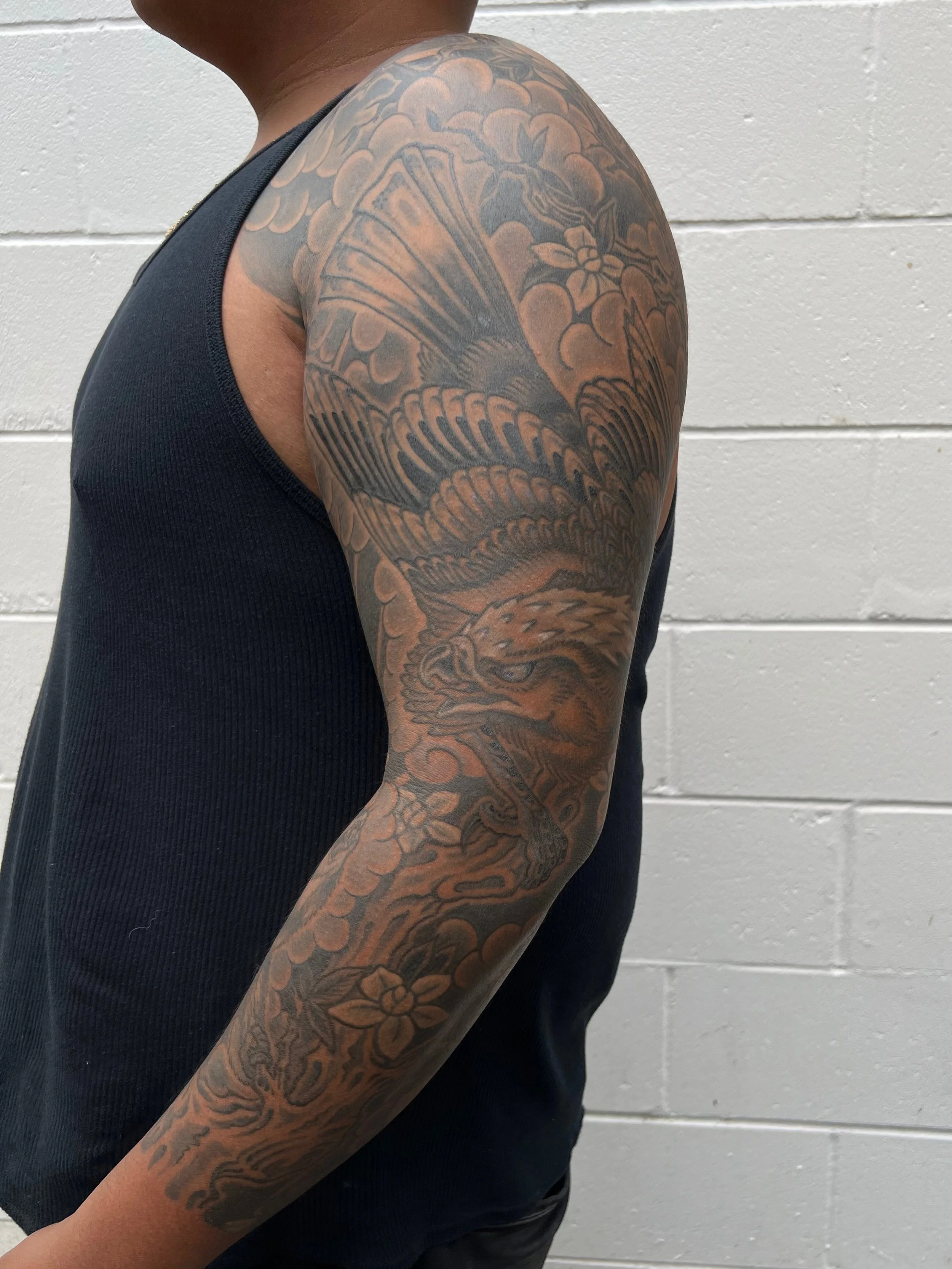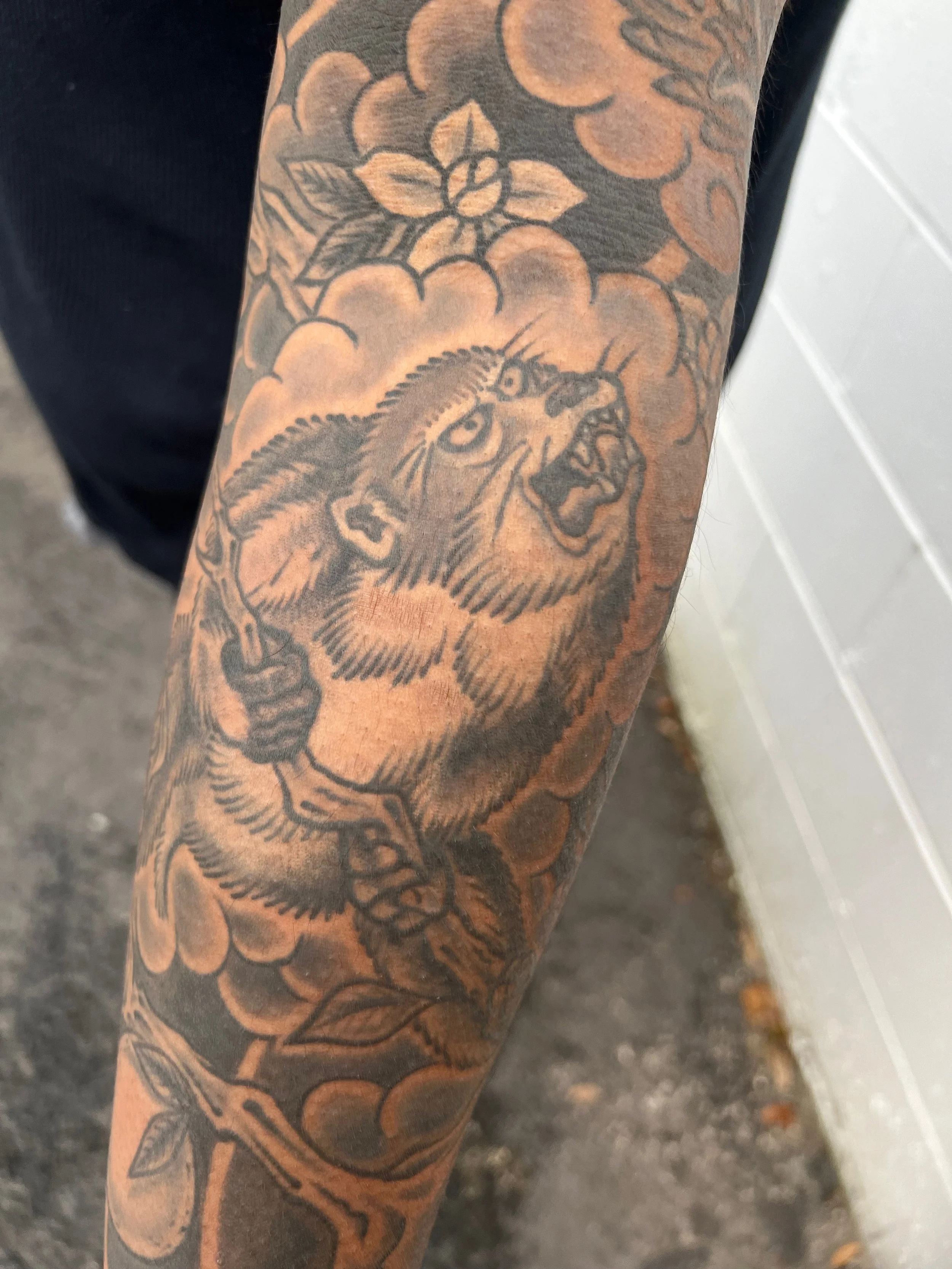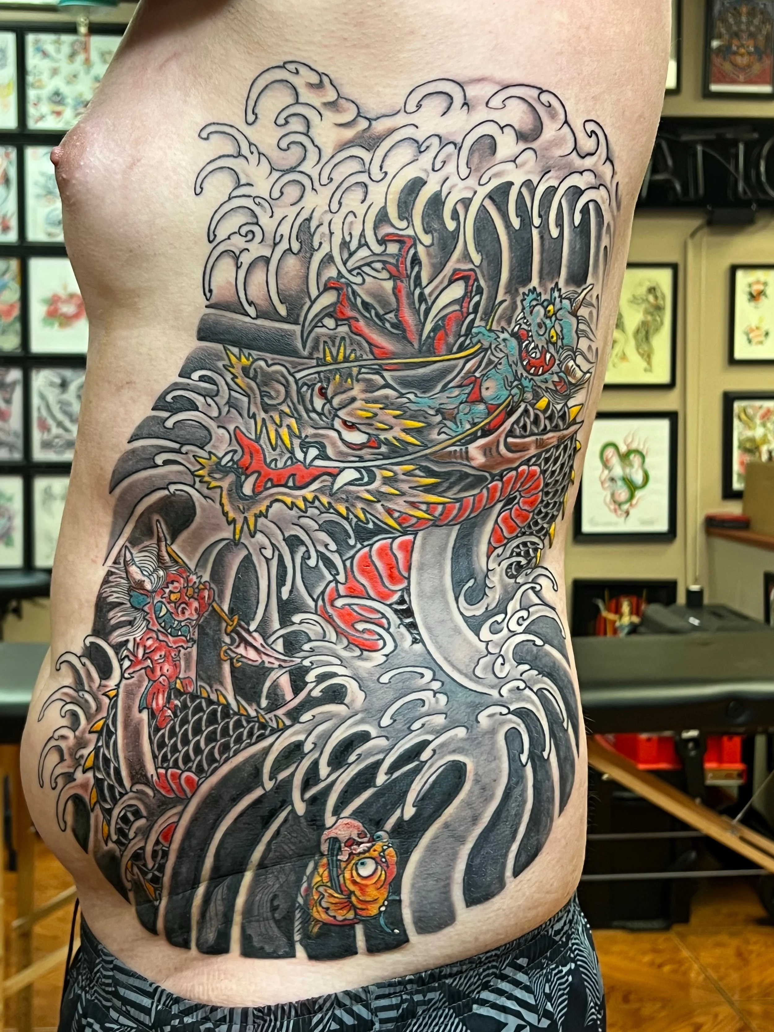 Large Scale (multiple session) work in various stages of completion, completed, and healed.