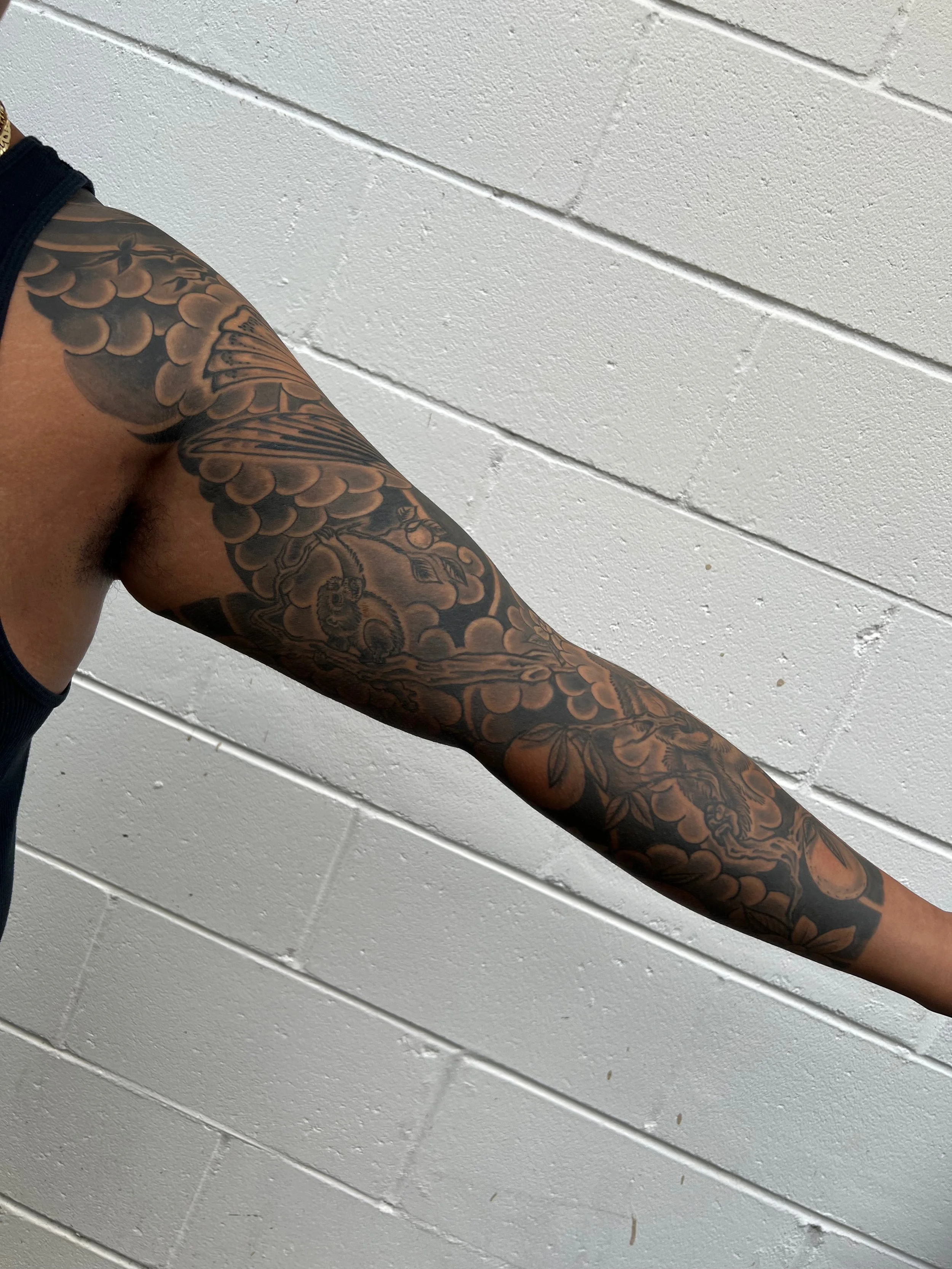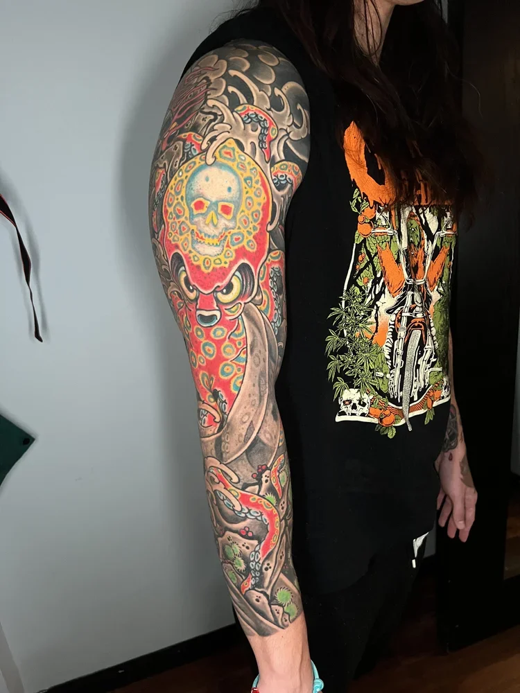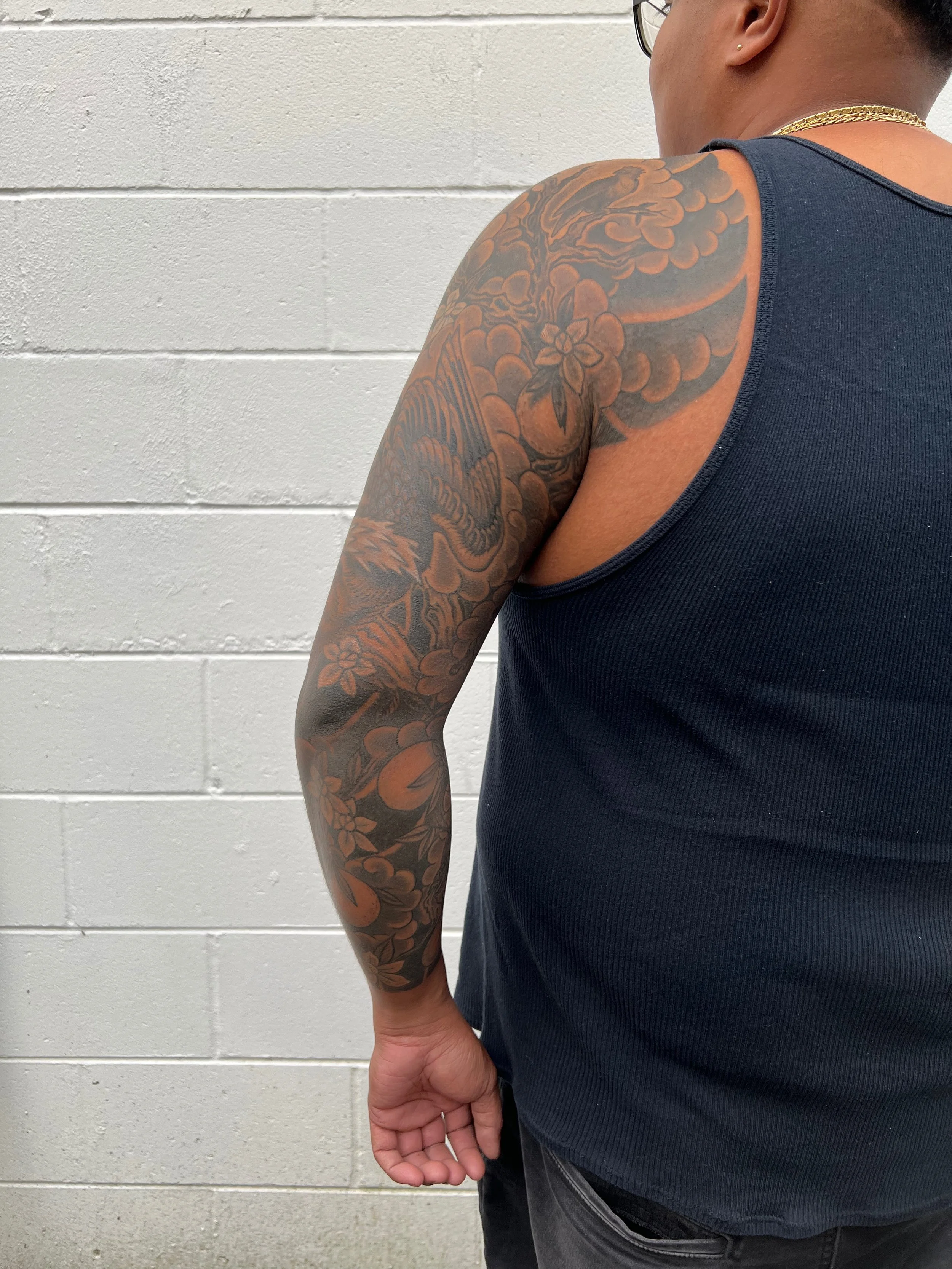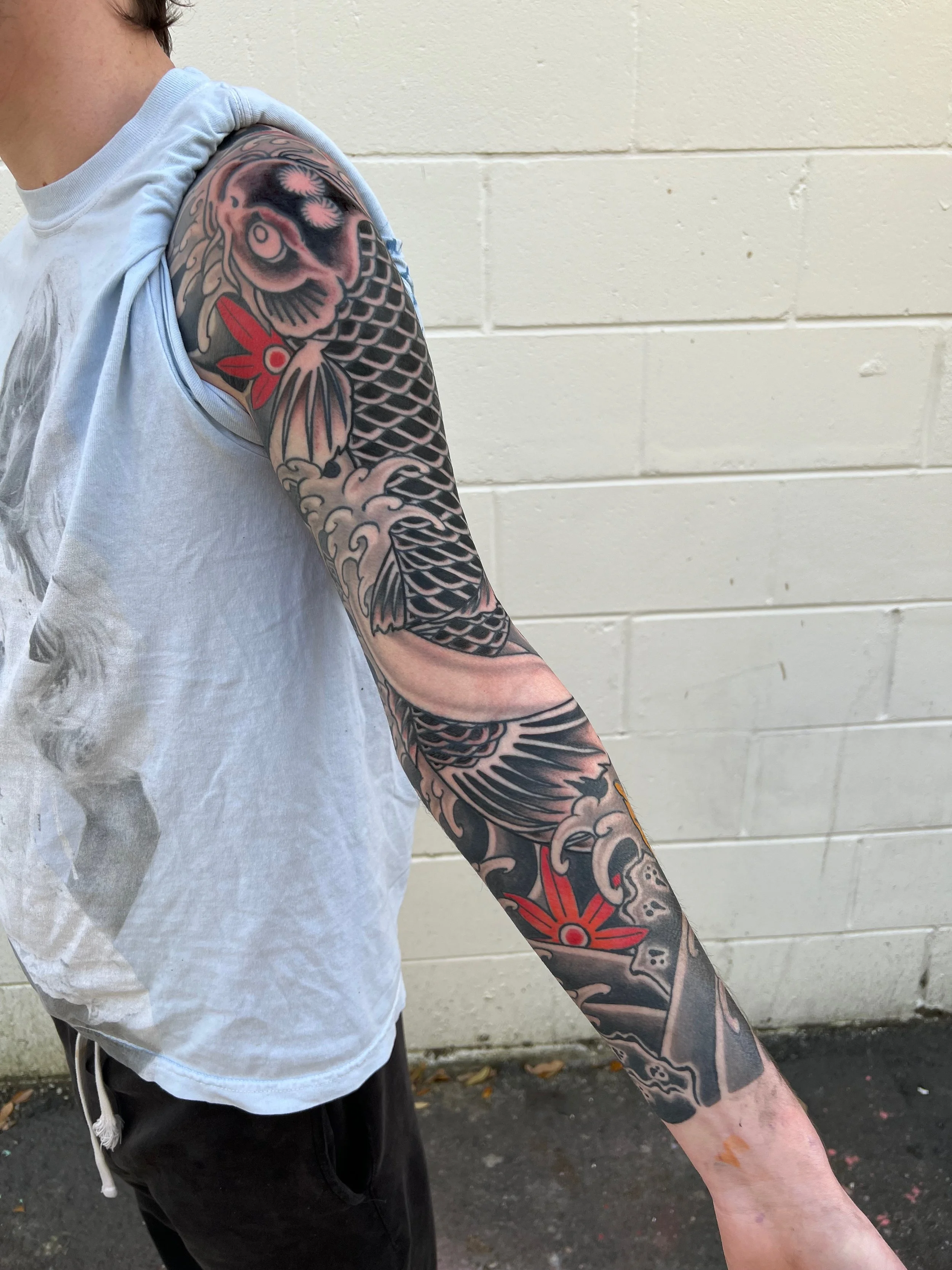 Large Scale (multiple session) work in various stages of completion, completed, and healed.