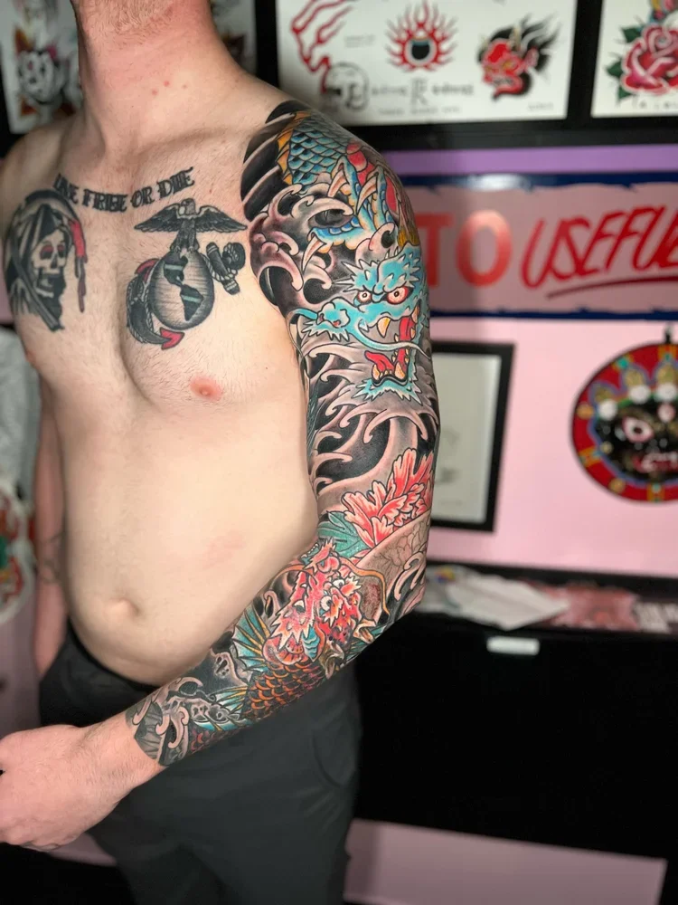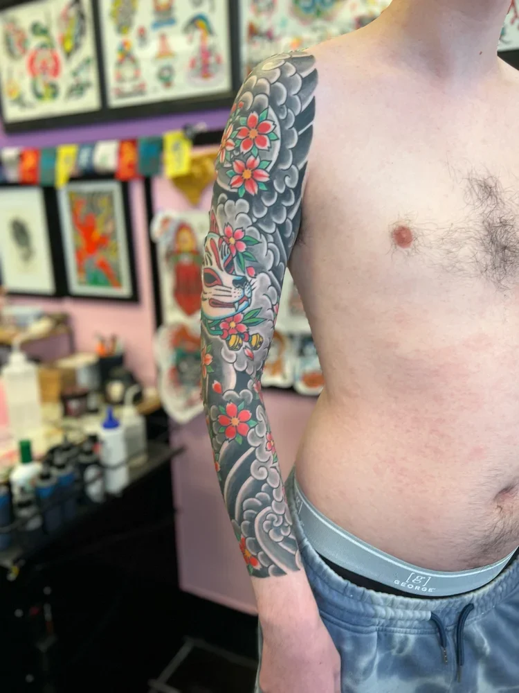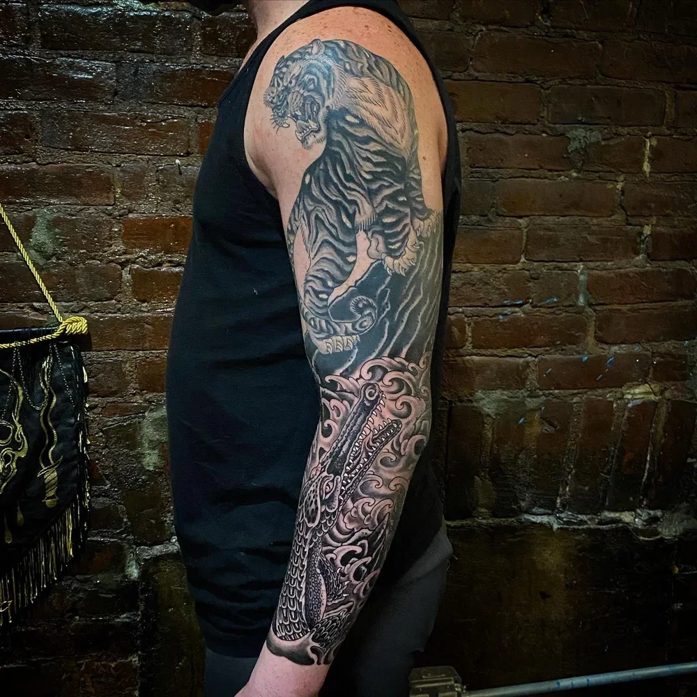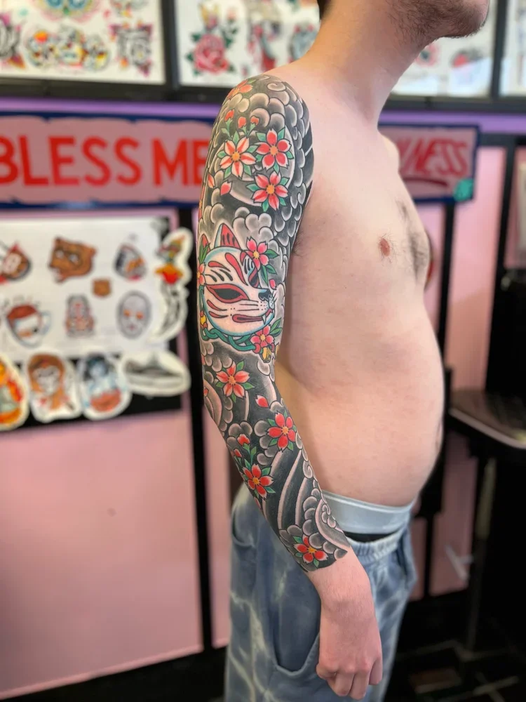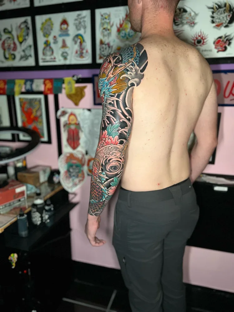 Large Scale (multiple session) work in various stages of completion, completed, and healed.